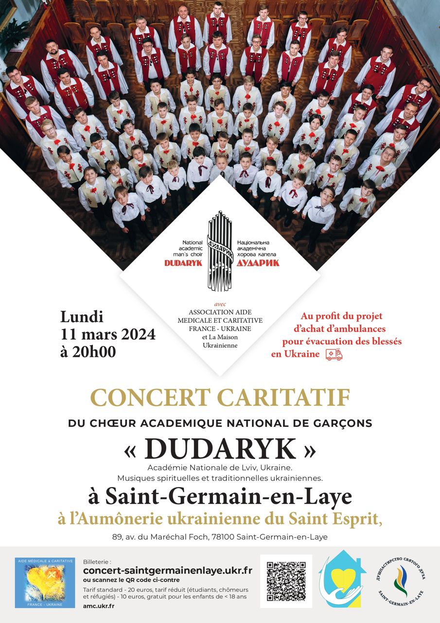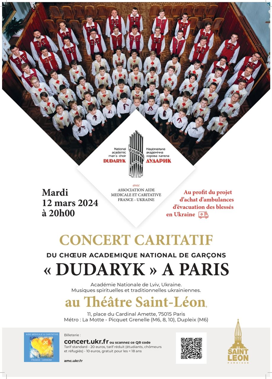 On vous invite à participer au concert caritatif exceptionnel du Chœur Académique National de garçons d’Ukraine « Dudaryk », qui